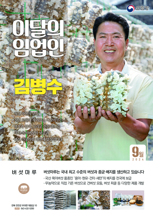 9월 이달의 임업인으로 전북 진안에서 목이버섯을 재배하는 임업인 김병수 버섯마루 대표가 선정됐다.