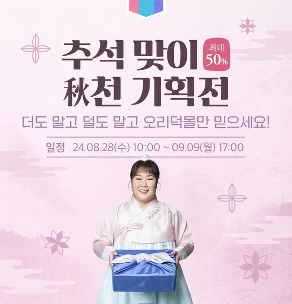 한국오리협회(이하 오리협회)와 오리자조금관리위원회(이하 오리자조금)는 지난달 28일부터 오는 9일까지 총 13일간 오리자조금이 운영하는 공식몰인 오리덕몰에서 ‘추석맞이 할인 기획전’을 진행한다고 밝혔다.
