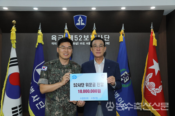 수협중앙회는 업무협약을 기념해 이날 사단 장병들에게 전복 버터구이와 바다장어구이 각 700인분을 특식으로 제공하고 수협은행과 함께 위문금 1000만 원을 지원했다.