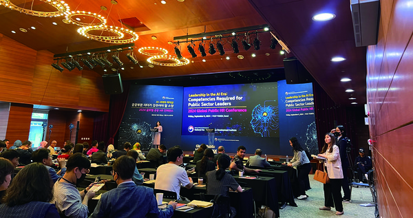 박지환 씽크포비엘 대표가 지난 6일 명동 포스트타워 10층 대회의실에서 인사혁신처 국가공무원인재개발원이 주최한 ‘글로벌 HR 컨퍼런스’에서 인공지능(AI) 시대 지도력과 공공부문 지도자가 갖출 소양을 발표했다.