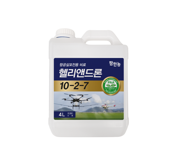 헬리앤드론은 항공살포 전용 액상 비료로 물에 녹일 필요 없이 바로 사용할 수 있어 매우 편리하다는 점이 강점이다. 뿌리발육 아미노산(PAA)과 함께 특수보조제를 함유해 양분이 잘 흡수되고 오래 유지되며 작물 생육 후기에 필요한 칼륨도 강화됐다.