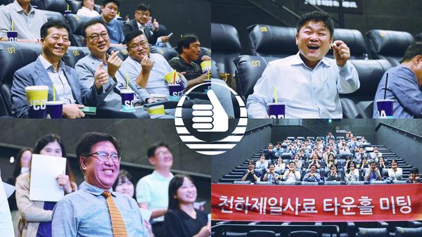 사료사업본부측이 맡아 지난달 25일 대전 신세계백화점 메가박스에서 진행한 타운홀미팅에선 권천년 대표이사를 포함해 약 50명의 임직원들이 영화 ‘베테랑2’를 관람하는 이색 소통의 자리로 진행했다.