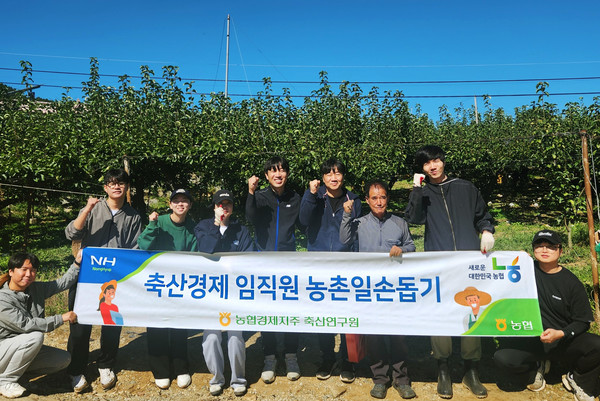 농협경제지주 축산연구원은 지난 4일 경기도 안성시 대덕면 소재 과수 농가를 찾아 농번기 일손돕기를 실시했다.