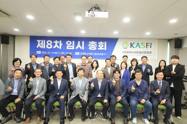 (사)한국스마트팜산업협회가 지난 15일 서울 aT센터에서 제8차 임시총회를 개최해 박현출 현 회장의 연임을 확정했다.