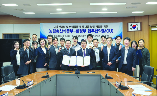 농림축산식품부(장관 송미령, 이하 농식품부)와 환경부(장관 김완섭)는 지난 21일 정부세종청사 농식품부 재난대응상황실에서 ‘가축전염병 및 야생동물 질병 대응 협력 강화를 위한 업무협약’을 체결했다.