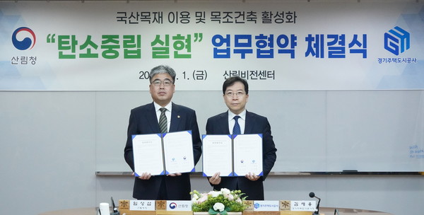 국산 목재 활용으로 탄소중립 실현에 다가가기 위해 산림청과 경기주택도시공사(GH)가 손 잡았다.