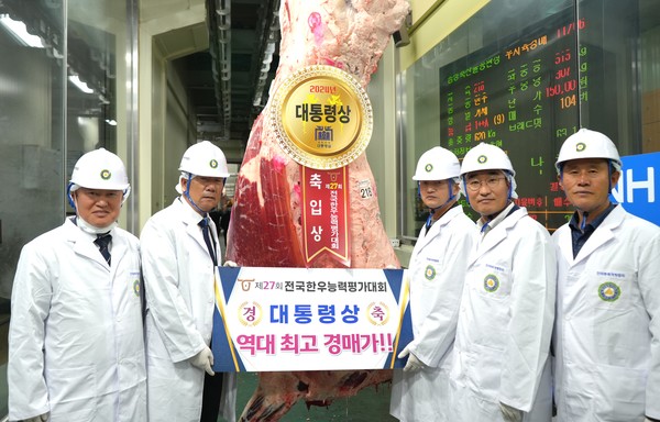 영예의 대통령상은 충북 음성군 풍산농장의 홍창영 대표가 차지했다. 대통령상으로 선정된 수상축은 도체중 620kg, 등심단면적 145㎠, 1++A였으며 kg당 15만 원에 낙찰돼 최종 경락가는 9300만 원으로 역대 최고가를 경신했다.