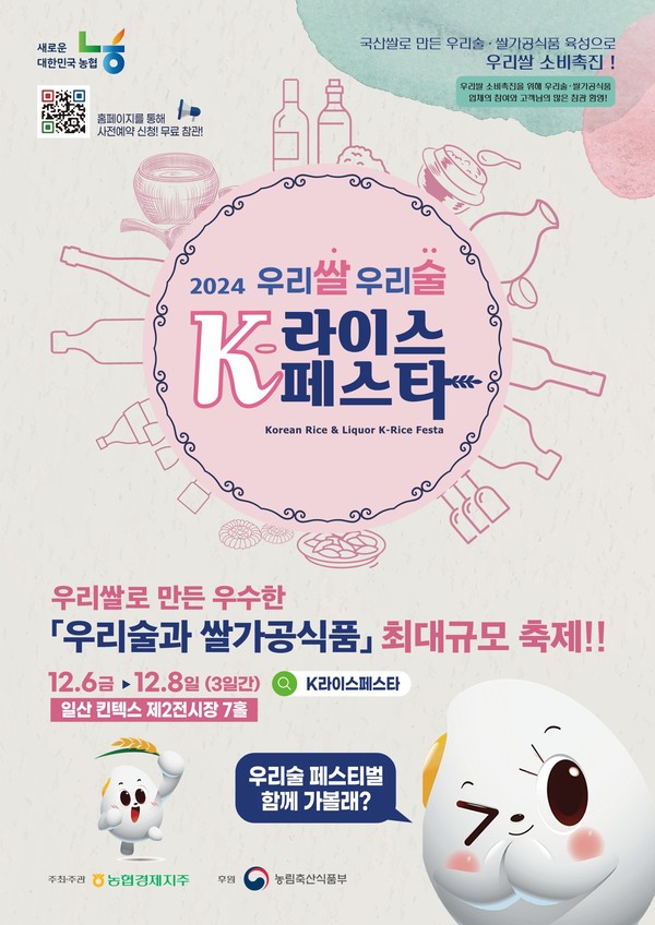 농협경제지주는 농림축산식품부와 함께 다음달 6일부터 8일까지 일산 킨텍스 제2전시장에서 국산 쌀 소비확대를 위한 ‘2024 우리쌀 우리술 K-라이스페스타’ 페스티벌을 개최한다.