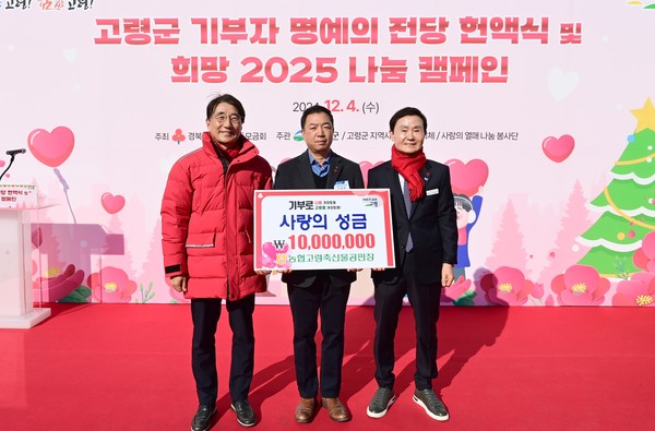 농협경제지주 고령축산물공판장은 지난 4일 희망 2025 나눔 캠페인의 일환으로 실시된 ‘기부로 나를 가치 있게, 고령을 가치 있게 모금행사’에 사랑의 성금 1000만 원을 기탁했다.
