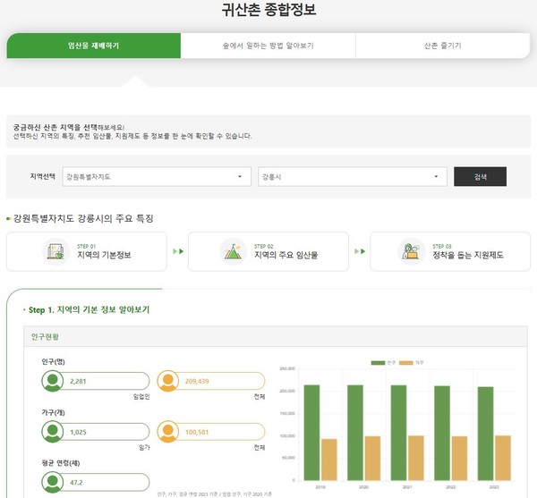 귀산촌 종합정보는 임업진흥원 누리집(kopfi.or.kr)에서 확인할 수 있다.
