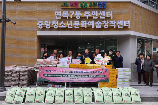 서울경기양돈농협은 지난 13일 서울 중랑구 면목7동 주민센터에서 농협서울본부(본부장 김상수), 동서울농협(조합장 장만선), 한국양계농협(조합장 정성진)과 함께 취약계층을 위한 따뜻한 겨울나기 기원 농축산물 나눔 행사를 실시했다.