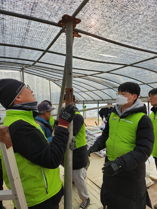 임직원들은 하우스 지지대 복구와 영농 폐자재 수거·정리, 주변 환경 정화 등에 구슬땀을 흘렸다. 일손돕기 후에는 별도의 간담회 시간도 가졌다.