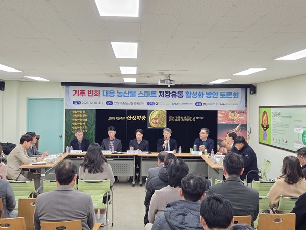 한국농식품유통품질관리협회와 농촌진흥청 국립원예특작과학원이 공동 주최하고 안성시, 안성원예농협이 후원한 ‘기후변화 대응 농산물 스마트 저장유통 활성화 방안 토론회’가 지난 10일 경기 안성 안성마춤농산물유통센터에서 개최됐다. 이날 토론회에는 농업계 산·학·연·관 관계자들이 참석해 농업의 기후변화 대응 방안에 대한 다양한 의견을 나눴다.