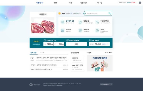 축과원에 따르면 한우고기 가공장 생산관리 시스템에서는 한우고기 입고부터 부분육 포장 처리 실적 신고, 반출신고 현황 등 정보를 실시간으로 확인할 수 있다.