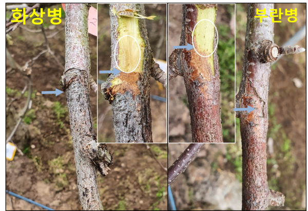 육안 식별이 어렵다면 보조적 수단으로 농진이 개발한 스마트폰 애플리케이션(앱) ‘과수화상병 전문가 상담’을 내려받아 활용할 수 있다. 궤양 증상을 촬영해 앱에 올리면 사진을 분석해 과수화상병 궤양 가능성을 백분율로 보여준다.