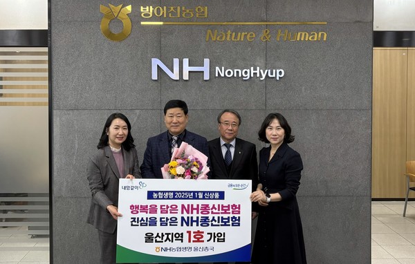 농협생명 울산총국(총국장 문영주)은 지난 6일 방어진농협(조합장 김홍걸)에서 NH농협생명의 신상품 ‘진심을 담은 NH종신보험’ 1호 가입 행사를 가졌다.