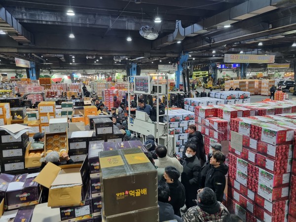 가락동농수산물도매시장 도매시장법인 중앙청과는 지난 3일 본사 경매장에서 과일 초매식을 열고 올해 첫 경매의 시작을 알렸다.