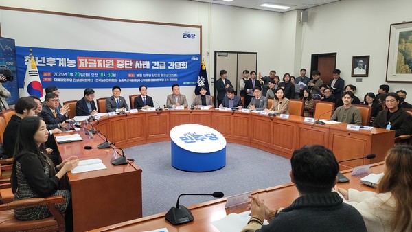 더불어민주당 민생경제회복단과 전국농어민위원회, 농림축산식품해양수산위원회 민주당 소속 국회의원 주최로 지난 20일 국회 본청 민주당 당대표 회의실에서 열린 ‘청년후계농 자금지원 중단 사태 긴급 간담회’에 참석한 청년농업인들은 “무책임한 정책으로 삶이 피폐해지고 있다”며 송미령 농림축산식품부 장관의 사과와 조속한 대책 마련을 촉구했다.