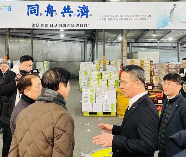 박서홍 농협경제지주 농업경제 대표이사(오른쪽 두 번째)는 설 명절 성수기를 맞아 지난 23일 농협 안산공판장과 동탄유통센터를 방문해 수급 상황과 가격 동향을 점검했다.