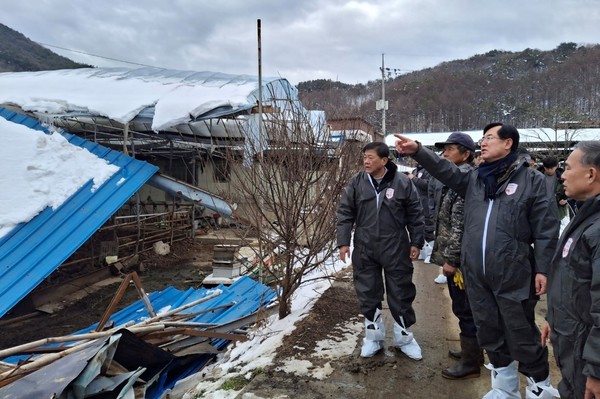 안병우 농협경제지주 축산경제 대표이사는 지난달 31일 지난 설 연휴기간 폭설로 피해를 입은 전북 완주군의 축산농가를 찾아 피해 상황을 점검했다.
