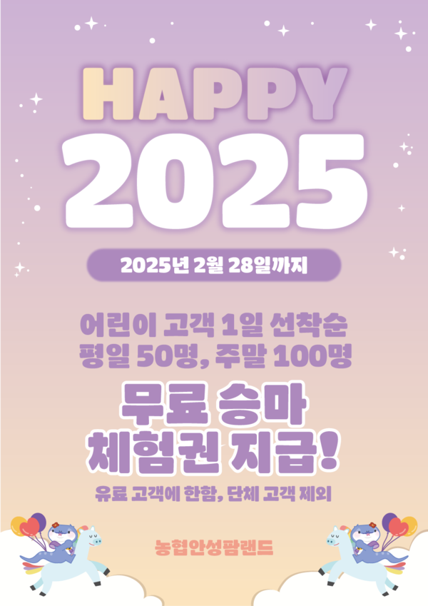 농협안성팜랜드는 오는 28일까지 어린이 고객을 대상으로 무료 승마 체험권을 지급하는 특별 이벤트를 실시한다.