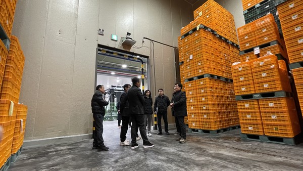 이승돈 농과원장은 보은거점산지유통센터 관계자 안내로 능동형 시에이(CA)저장고 도입 현장을 둘러보고 보급 과정에서 생긴 어려움과 개선점을 파악했다.