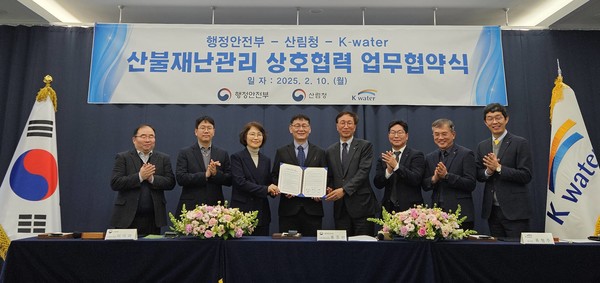 업무협약식은 홍종완 행안부 사회재난실장, 이미라 산림청 차장, 류형주 수자원공사 부사장이 참석한 가운데 진행됐다.