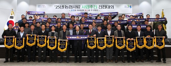 농협사료는 지난 7일 서울 강동구 본사에서 임직원들과 사업목표 달성 결의를 다지는 ‘2025년 사업추진 전진대회’를 개최했다.