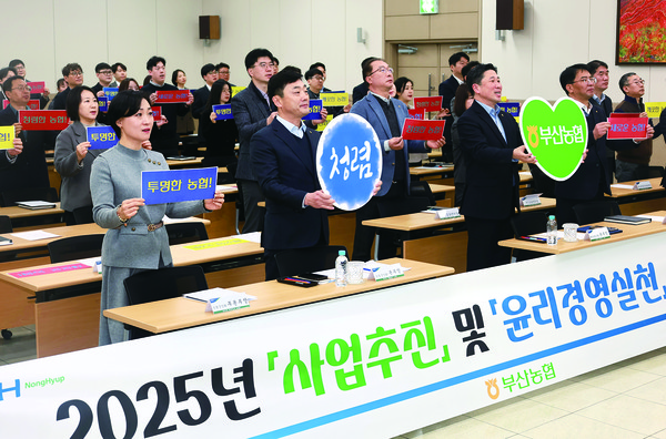 농협부산본부(본부장 이수철)는 지난 6일 부산본부 대강당에서 2025년 ‘사업추진과 윤리경영실천 결의대회’를 열었다.
