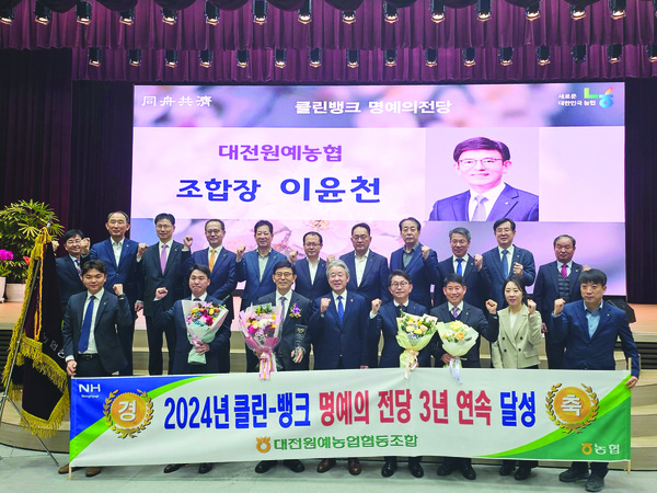 대전원예농협(조합장 이윤천)은 지난 4일 전국 최초로 클린뱅크 ‘명예의 전당’ 달성탑을 3년 연속 수상했다.