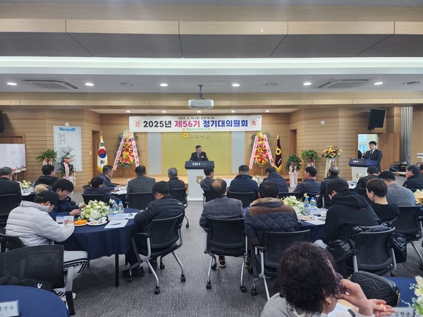전남 영암축협(조합장 이맹종)은 지난 14일 조합 2층 대회의실에서 ‘제56기 정기대의원회’를 개최해 2024년도 결산보고서 승인과 이익잉여금 처분안을 의결했다.