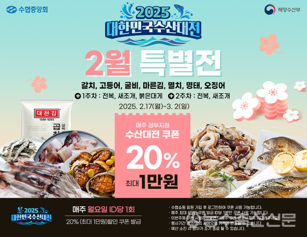 수협쇼핑 관계자는 “봄을 앞두고 겨울 바다가 주는 마지막 선물과도 같은 제철 수산물을 저렴한 가격에 구매할 수 있는 좋은 기회”라고 설명했다.