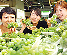 농협유통 하나로클럽 양재점은 지난 3일 대전 산내농협에서 첫 출하한 청포도 네오마스캇을 선보였다. 한·칠레FTA 체결로 시설포도산업이 존폐위기에 걸린 가운데 출시된 네오마스캇은 청포도 품종중 하나로 일반 포도에 비해 향이 진하고 육질이 단단하며 과즙이 적은 것이 특징이다. 또한 당도도 17~18브릭스로 일반 과일보다 높다.