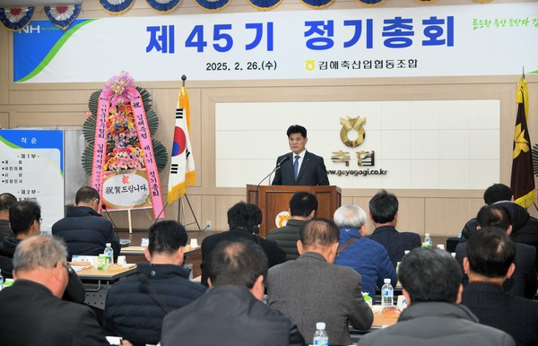 김해축협(조합장 송태영)은 지난달 26일 본점 3층 대회의실에서 송태영 조합장을 비롯한 임원, 대의원이 참석한 가운데 제45기 정기총회를 개최하고 지난해 결산보고서를 심의·의결했다.