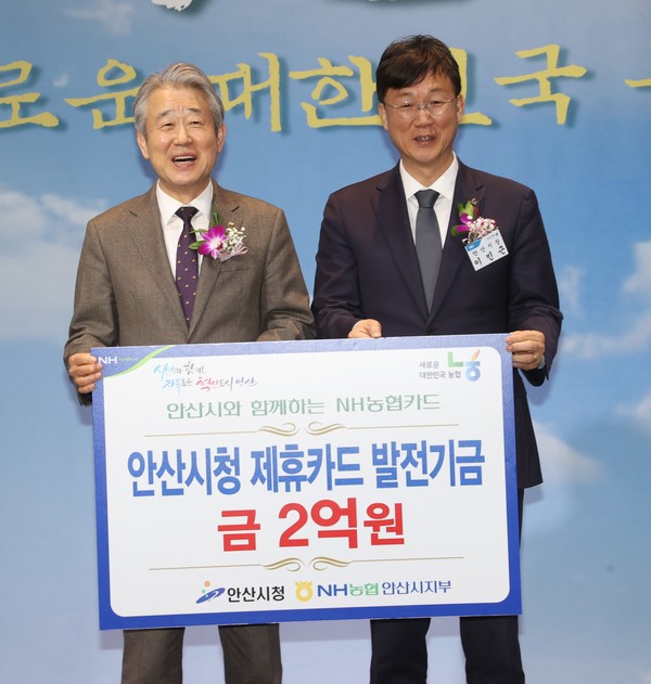 도농상생자금은 농산물 가격 안정화와 도시농협을 통한 농축산물 판로 확보에, 안산시 제휴카드 발전기금은 지자체와 협력을 통한 국가 균형 발전과 상생의 가치 제고에 기여할 수 있을 것으로 기대된다.