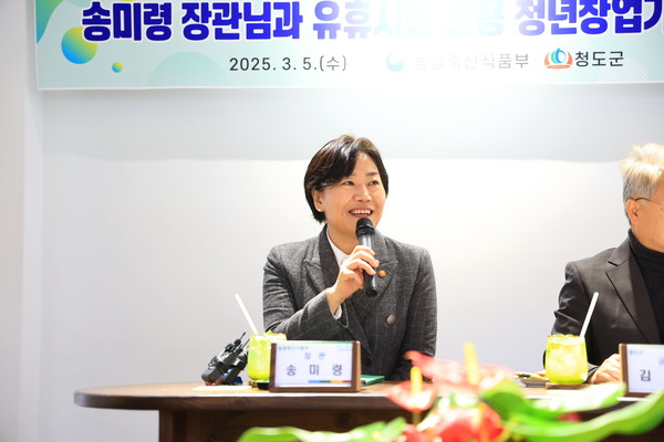 송미령 농림축산식품부 장관은 지난 5일 경북 청도군에 위치한 다로리 커뮤니티와 화양어울림 센터 등을 찾아 농촌공간 재생과 주민 생활 서비스 시설을 둘러보고 지역주민, 김하수 청도 군수 등 관계자들와 농촌 소멸 극복을 위한 방안 등을 논의했다.