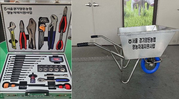 이번에 지원된 스테인리스 외발 손수레와 수공구 세트는 양돈농가의 작업능률 향상과 공동구매에 따른 경제적 부담이 경감될 것으로 기대되고 있다.