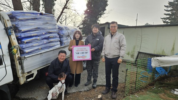 팜스코는 2021년을 시작으로 안성, 제주, 음성, 군산, 칠곡의 유기견 보호소 5곳에 자사 펫푸드를 전달하는 지속적인 기부활동을 해오고 있다.