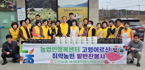 이날 행사는 농업인행복센터 여성대학 행복채우미 봉사단이 황태국과 밑반찬 300인분을 정성스럽게 준비해 지역 내 고령 어르신과 독거노인, 장애인 가족, 취약농가 등을 가가호호 방문해 전달했다.