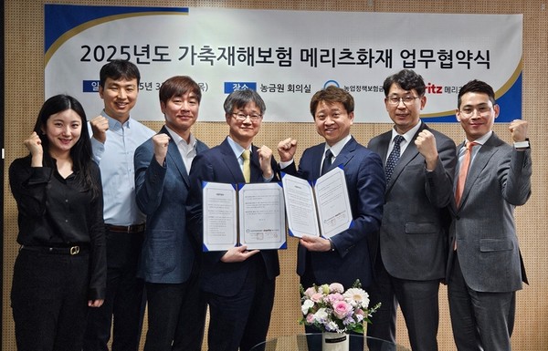 농업정책보험금융원(이하 농금원)은 지난 27일 메리츠화재해상보험(이하 메리츠화재)과 가축재해보험 사업 약정을 체결하고 보험상품 판매의 시작을 알렸다.