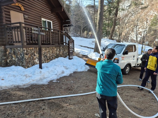 국립자연휴양림관리소는 지난해 두타산자연휴양림 외 5개소에 산불소화전 24개를 확충하고, 국유림관리소와 협업하여 산불 소화탑 6개도 추가로 신설했다. 현재 전국 46곳의 국립자연휴양림 내 소화전은 133개, 소화탑은 29개를 설치·운영 중이며 산불 발생 시 불씨가 강한 바람을 타고 휴양시설물로 옮겨붙는 비화에도 철저히 대비하기 위해 매년 안전시설을 확충하고 있다.