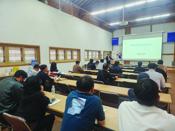 이날 교육에는 전국 지자체 밭농업 기계 담당자 등이 참석했다. 첫째 날에는 △최용 한국농수산대 교수, ‘밭농업기계화 연구개발 동향’ △홍동혁 경북대 밭농업기계개발연구센터 부센터장, ‘농업용 무인 자율작업 로봇기술의 노지 스마트팜 적용’ △이홍석 국립식량과학원 연구사, ‘노지스마트농업 현황과 전망 및 미래 발전 방향’ 등 3개 강연이 진행됐다. 다음날에는 상주농업기계박람회장을 관람하고 종합토의하는 시간을 가졌다.