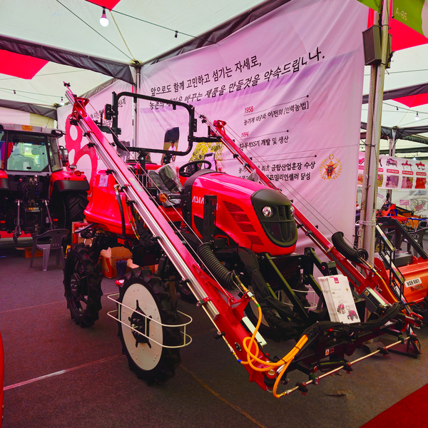 아세아텍은 디젤 승용관리기 X20 시리즈를 자신 있게 내세웠다. 저속회전과 높고 균일한 토크 출력을 내는 구보다 D902 디젤 엔진을 탑재하고 유압식무단변속장치(HST)를 채택해 작업 속도를 손쉽게 조작하고 작업에 충분한 견인력을 제공한다. 주행 동력분무기로 활용할 때도 X20E 모델 기준 최대 16.2m, 40개 노즐이라는 폭넓은 방제폭에 아세아 주물 분무기 100A를 장착해 강력한 분무 시스템을 갖췄다. 수평실린더로 붐의 경사를 조절할 수 있어 경사지에서도 방제 가능하다.