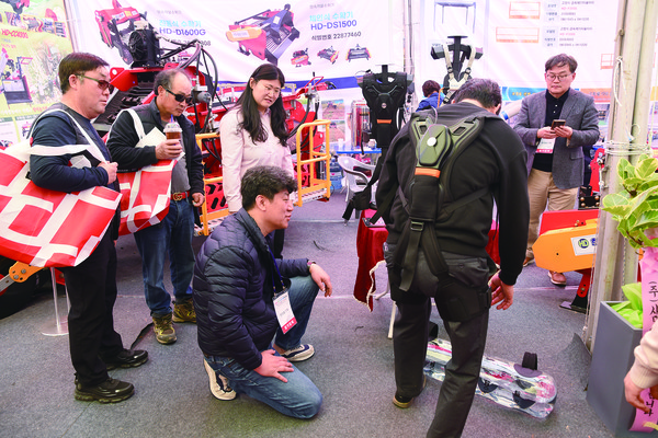 현대농기계는 입는 작업보조로봇인 웨어러블 로봇(외골격 로봇)을 미리 선보였다. 한양대 로봇공학과에서 개발해 순수 국내 기술로 개발된 농작업 보조 외골격 로봇은 허리를 보호함과 동시에 평상시보다 높은 근력을 발휘할 수 있게 한다. 무거운 장비나 더미도 손수비게 옮길 수 있다. 남녀노소 누구나 쉽게 착용·사용할 수 있으며 현대농기계는 조만간 정식으로 출시할 예정이다.