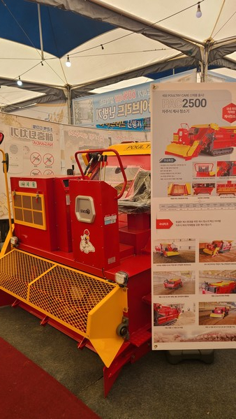 ‘자연애(愛)! 농민애(愛)! 상생의 기업’을 표방하는 ㈜세웅은 청결한 계사 환경을 위해 자주식 최대 적재함을 갖춘 자주식 계사 청소기인 PAC2500을 선보였다. PAC2500은 견인형이 아닌 자주형 청소차로 계분 수거율이 90% 이상으로 왕겨 재사용 용이하다. 자주형 주행방식으로 조작이 용이하고 코너 부근까지도 작업이 가능하다. 계분 수집과 운반을 병행할 수 있으며 자동으로 배출되는 게 특징이다.