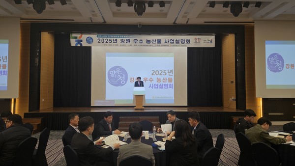 농협강원본부(본부장 김경록)는 강원특별자치도와 함께 지난 7~8일까지 이틀간 홍천 소노벨 비발디파크에서 전국 도매시장 경매사들을 한자리에 초청, ‘2025년 강원 우수 농산물 사업설명회’를 개최했다.
