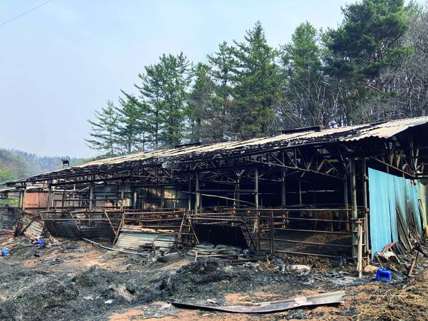 한우협회에서 파악한 바에 따르면 이번 경북 산불로 퇴비사와 시설동을 포함해 한우 축사 150동이 탔으며 조사료 건초 8000롤, 배합사료 300포 등 재산피해 규모도 상당한 것으로 나타났다. 또한 한우농가들의 급수기와 농기계 150대가 전소되는 한편 농장 옆 주거 주택 80채가 전소되는 등 피해규모가 점점 커지고 있는 상황이다.