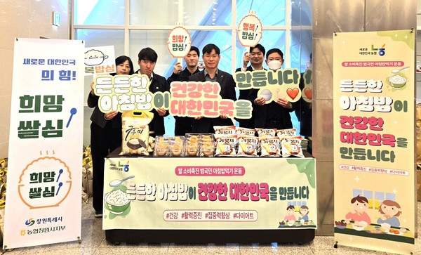 농협창원시지부는 기업체 대표 등 참석자들 대상으로 리플릿과 홍보용 쌀을 배부하는 등 아침밥의 중요성에 대해 설명하고 건강한 식습관 형성의 필요성을 강조했다.