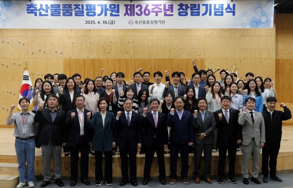 축산물품질평가원은 지난 18일 세종시 본원에서 열린 창립 36주년 기념행사와 안전 보건 경영방침 선포식을 통해 기관의 지속 가능한 발전과 안전하고 건강한 업무 환경 조성에 대한 강력한 실천 의지를 대내외에 알렸다.