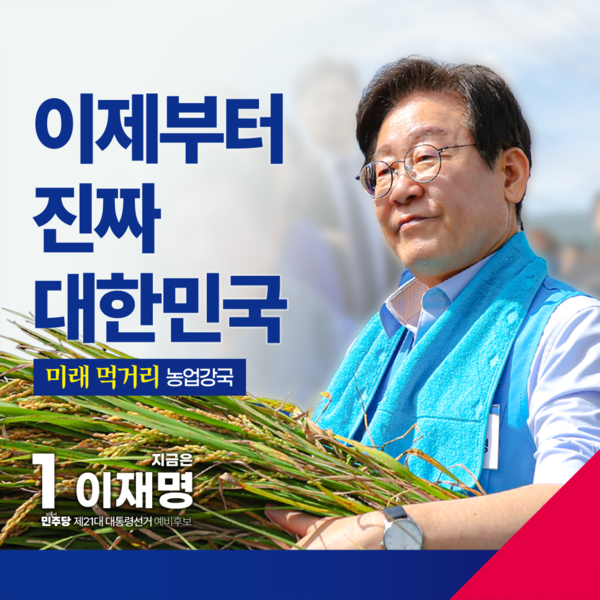 6월 3일 조기대선을 앞두고 ‘이제부터 진짜 대한민국’을 슬로건으로 내건 더불어민주당의 이재명 대선 후보의 농업 공약에 대한 밑그림이 그려졌다. ‘기후위기 시대, 지속가능한 농업을 위해 K-농업강국’을 만들겠다는 구상이다.